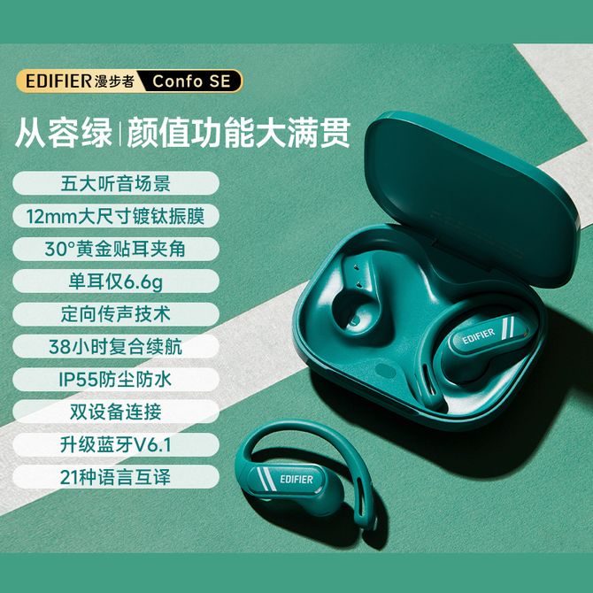 漫步者/EDIFIER 开放式真无线蓝牙耳机 挂耳式AI翻译 HiFi音质蓝牙6.1耳麦Comfo-SE绿耳塞 镀钛动圈HiFi音质,动态低频补偿,稳挂于耳,AI通话防风降噪,蓝牙6.1,超长续航,游戏低延迟,多EQ音效,IP55防尘防水,APP多语种翻译 兑换价格 11500 里程 会员卡别 终身白金卡 白金卡 金卡 银卡 普通卡 儿童卡 服务 由 智科精品 发货并提供售后 颜色: 绿色 购买数量: 件 库存件 配送地址: 立即购买 加入购物车 成功添加到购物车 关闭 购物车共有 种商品 总金额为: