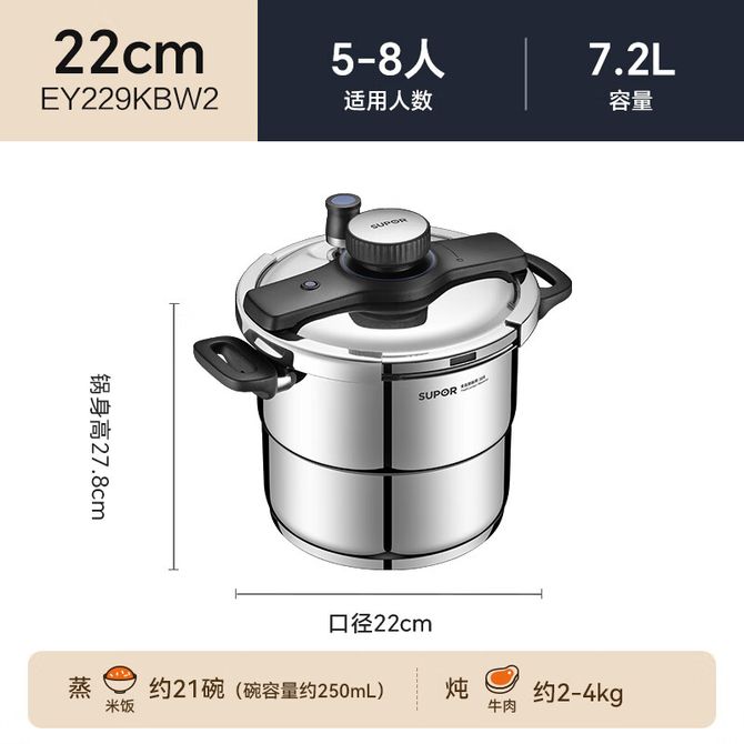 苏泊尔(SUPOR) 防爆高压锅304不锈钢巧易开7.2L 压力锅22cm燃气电磁炉通用 带蒸格 兑换价格 22700 里程 会员卡别 终身白金卡 白金卡 金卡 银卡 普通卡 儿童卡 服务 由 人人余厨具专营店 发货并提供售后 颜色: 银色 购买数量: 件 库存件 配送地址: 立即购买 加入购物车 成功添加到购物车 关闭 购物车共有 种商品 总金额为: