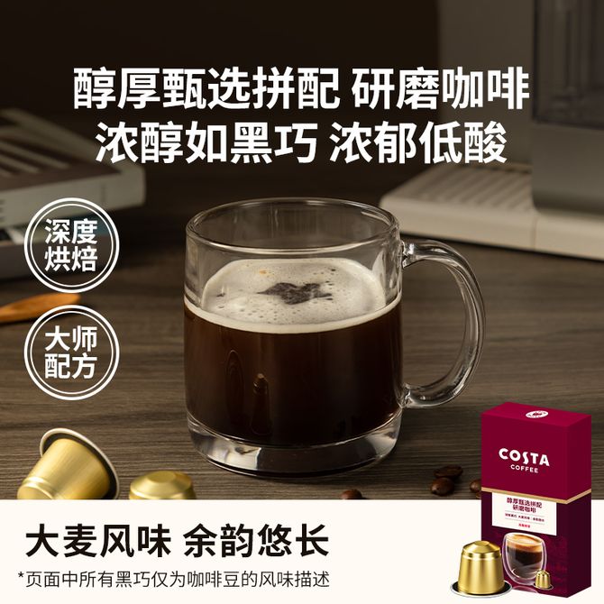 COSTA 醇厚甄选拼配胶囊咖啡5g*10/盒 浓郁黑巧 大麦风味 兑换价格 2000 里程 会员卡别 终身白金卡 白金卡 金卡 银卡 普通卡 儿童卡 服务 由 南美进口馆 发货并提供售后 规格: 盒装 购买数量: 件 库存件 配送地址: 立即购买 加入购物车 成功添加到购物车 关闭 购物车共有 种商品 总金额为: 组合销售 产品介绍 产品规格 售后服务 产品咨询 发现好货 星巴克 星选芝士奶香270ml*3瓶 即饮咖啡瓶装饮料 1200 里程 摩可纳/MOCCONA 经典深度烘焙冻干速溶咖啡 100g 3900 里程 星巴克Nespresso浓遇胶囊咖啡10粒中度烘焙特选综合美式大杯瑞士进口 2200 里程 麦斯威尔(Maxwell House) 金咖咖啡固体饮料90克 1800 里程 味滋源 小颗粒苦咖啡豆粉速溶咖啡美式黑咖啡20g*5盒(共50袋) 1100 里程