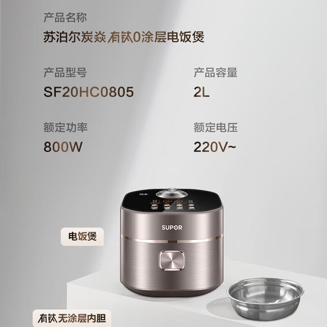 苏泊尔 电饭煲2L 有钛0涂层球釜内胆IH加热 不粘柴火饭电饭锅 24小时智能预约炭焱SF20HC0805 24小时预约多功能大容量煮饭蒸蛋 兑换价格 30400 里程 会员卡别 终身白金卡 白金卡 金卡 银卡 普通卡 儿童卡 服务 由 锦宁家电馆 发货并提供售后 颜色: 其他 购买数量: 件 库存件 配送地址: 立即购买 加入购物车 成功添加到购物车 关闭 购物车共有 种商品 总金额为: