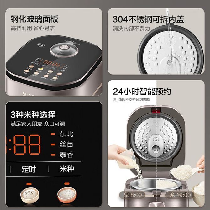 组合销售 产品介绍 产品规格 售后服务 产品咨询 发现好货 苏泊尔(SUPOR) 电饭煲电饭锅4L大容量 不粘内胆4-6个人前置大屏面板24小时预约上蒸下煮多功能家用智能SF40FC0063 8300 里程 奥克斯/AUX 电饭煲3L电饭锅 2-3人小型预约智能电饭煲VK-309F2 5100 里程 苏泊尔(SUPOR) 迷你电饭煲家用电饭锅2-3人3L小容量蓝钻不粘内胆快煮饭功能智能预约小型多功能SF30FC0187 6100 里程 美菱/MELNG 电饭煲3L触控式预约定时MF-LC3005 4400 里程 苏泊尔(SUPOR) 煮饭煮粥智能预约多功能一锅多用小型微压电饭锅30FC0187 7200 里程
