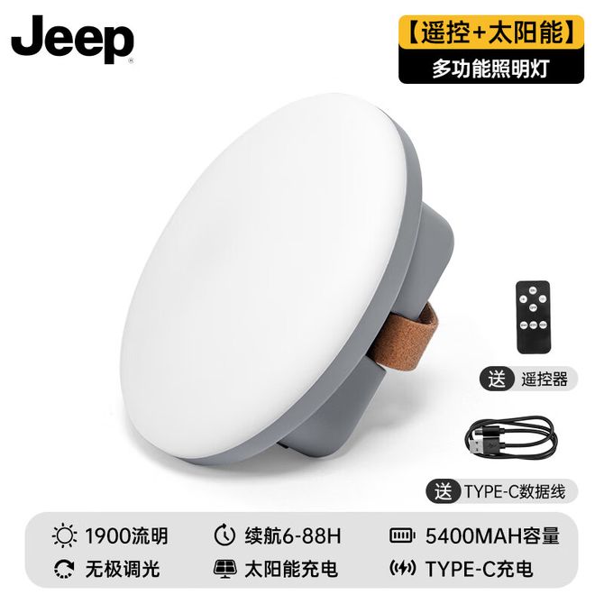 Jeep Type-C充电+太阳能充电两用无极调光可遥控长续航户外照明多功能露营灯 Type-C充电+太阳能充电、三档无极调光 兑换价格 3000 里程 会员卡别 终身白金卡 白金卡 金卡 银卡 普通卡 儿童卡 服务 由 至恩户外运动专营店 发货并提供售后 颜色: 银色 购买数量: 件 库存件 配送地址: 立即购买 加入购物车 成功添加到购物车 关闭 购物车共有 种商品 总金额为: