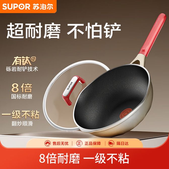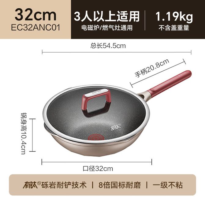 苏泊尔(SUPOR) 有钛不怕铲炒菜锅0氟不粘8倍耐磨煎炒锅32cm通用 可进洗碗机EC32ANC01 不粘锅 少油烟 内壁耐磨 智控油温 锅底防滑 可用铁铲 可进洗碗机 防烫手柄 兑换价格 17000 里程 会员卡别 终身白金卡 白金卡 金卡 银卡 普通卡 儿童卡 服务 由 人人余厨具专营店 发货并提供售后 颜色: 金色 购买数量: 件 库存件 配送地址: 立即购买 加入购物车 成功添加到购物车 关闭 购物车共有 种商品 总金额为: 组合销售 产品介绍 产品规格 售后服务 产品咨询 发现好货 苏泊尔 炫彩易洁不粘炒锅 NC30F4 8700 里程 苏泊尔(SUPOR) 臻火蜂窝铁锅32cm 家用无涂层老式熟铁炒锅平底煎炒锅锅具 3400 里程 拜格(Bayco) 平底炒锅煎蛋锅平底锅锤纹小铁锅BG50137【28cm】 1900 里程 德世朗(DESLON) 无涂层炒锅铁锅可视化盖龙鳞0氟精铁不粘炒锅32cm炒菜锅炉灶通用 黑色 3500 里程 炊大皇/Cookerking 炒锅 30cm+盖子 无涂层聚油爆炒精铁锅炒菜锅电磁炉燃气通用锅具精铁锅 3900 里程