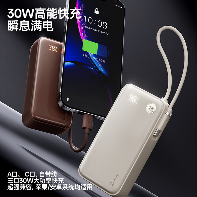 组合销售 产品介绍 产品规格 售后服务 产品咨询 发现好货 ZNNCO 充电宝20000毫安时超薄小巧迷你自带线大容量快充移动电源便携苹果华为小米2万mAh手机 4200 里程 睿量/Remax 磁吸无线充电宝 Magsafe快充 5000mAh超薄小巧便携移动电源 手机背夹迷你移动电源 适用于苹果华为小米手机 RPP-107 4600 里程 雷摄 T68S【3C认证可上飞机】充电宝10000毫安 移动电源 22.5W快充丨1万毫安丨多口输出 1700 里程 纽曼(Newmine) 自带四线充电宝 3C认证 LED智能数显10000毫安移动电源 AL03 经典黑 3000 里程 雷摄 【3C认证】LS-YDZJ01 10000毫安 四线多功能移动电源 黑色 2000 里程