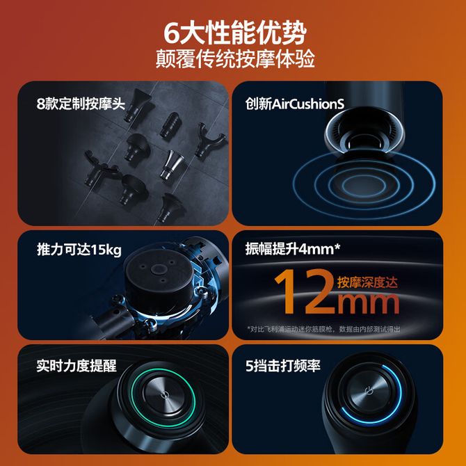 飞利浦/Philips 筋膜枪运动筋膜枪创新缓震保护8大按摩头肌肉放松按摩器健身运动筋膜枪 8大按摩头 5档击打频率 实时力度提醒 360°缓震海绵头 兑换价格 47800 里程 会员卡别 终身白金卡 白金卡 金卡 银卡 普通卡 儿童卡 服务 由 北京致诚博雅贸易有限公司 发货并提供售后 颜色: 其他 购买数量: 件 库存件 配送地址: 立即购买 加入购物车 成功添加到购物车 关闭 购物车共有 种商品 总金额为: 组合销售 产品介绍 产品规格 售后服务 产品咨询 发现好货 鹰伦 U型颈椎按摩仪SKT-Y8807 白色 3400 里程 亚摩斯/Amos 多功能筋膜枪 小巧轻盈携带方便智能 运动护理修复神器AS-JM256 3900 里程 践程JeoyCosy 脉冲颈椎按摩仪 热敷颈部按摩器 智能家用理疗肌肉放松健康护理肩颈护颈仪 3500 里程 SKG 筋膜枪便携按摩仪专业级筋膜枪肌肉按摩器全身颈椎肩颈腰腿运动 8700 里程 奥克斯/AUX 6头筋膜枪-AJM-74A327充电款 4800 里程