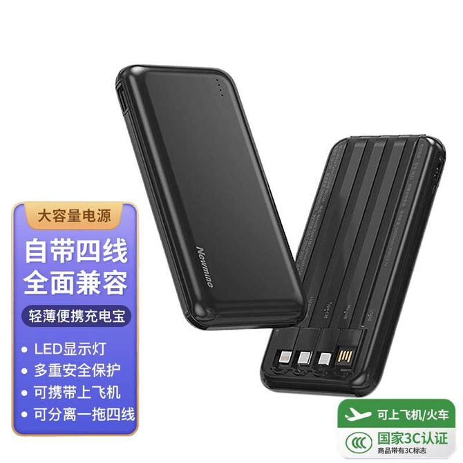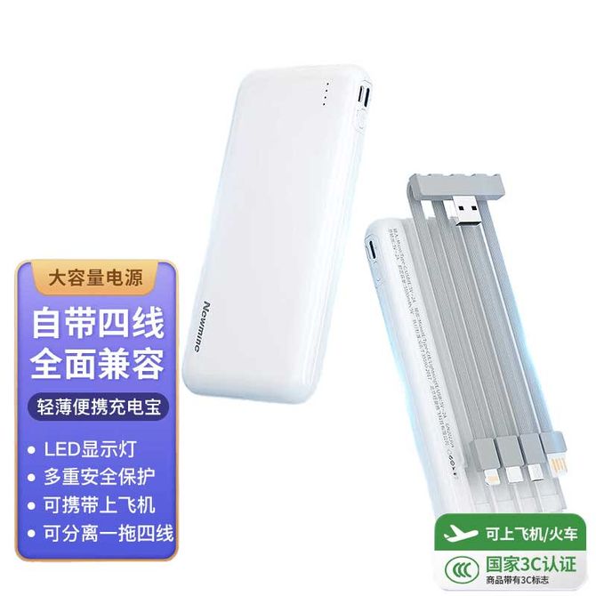 纽曼(Newmine) 自带线充电宝【3C认证可上飞机高铁】可拆卸一拖四线大容量小巧便携轻薄LED显示移动电源 AL22白【10000毫安 可拆卸四线】黑色 自带四线10000毫安 兑换价格 2900 里程 会员卡别 终身白金卡 白金卡 金卡 银卡 普通卡 儿童卡 商品已下架 1. 请联系卖家咨询 2. 逛逛单象数码专营店选择其他商品 组合销售 产品介绍 产品规格 售后服务 产品咨询 发现好货 ZNNCO 充电宝20000毫安时超薄小巧迷你自带线大容量快充移动电源便携苹果华为小米2万mAh手机 4200 里程 睿量/Remax 磁吸无线充电宝 Magsafe快充 5000mAh超薄小巧便携移动电源 手机背夹迷你移动电源 适用于苹果华为小米手机 RPP-107 4600 里程 雷摄 T68S【3C认证可上飞机】充电宝10000毫安 移动电源 22.5W快充丨1万毫安丨多口输出 1700 里程 纽曼(Newmine) 自带四线充电宝 3C认证 LED智能数显10000毫安移动电源 AL03 经典黑 3000 里程 雷摄 【3C认证】LS-YDZJ01 10000毫安 四线多功能移动电源 黑色 2000 里程