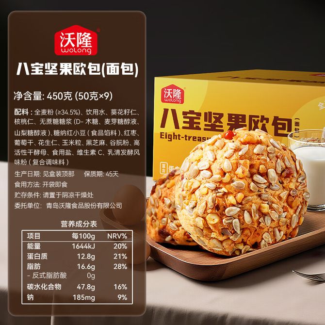 沃隆(wolong) 八宝坚果欧包450g 休闲零食干果糕点 下午茶 沃隆(wolong) 八宝坚果欧包450g 休闲零食干果糕点 下午茶 兑换价格 1100 里程 会员卡别 终身白金卡 白金卡 金卡 银卡 普通卡 儿童卡 服务 由 繁星尚品 发货并提供售后 规格: 组合 购买数量: 件 库存件 配送地址: 立即购买 加入购物车 成功添加到购物车 关闭 购物车共有 种商品 总金额为: 组合销售 产品介绍 产品规格 售后服务 产品咨询 发现好货 稻香村 桃酥640g 老式宫廷饼干 点心传统糕点 1600 里程 鲜记 每日坚果7日装140g 混合坚果果干坚果炒货孕妇营养健康休闲零食坚果礼盒 1300 里程 稻香村 蜂蜜蛋糕330g/袋*2 糕点 小吃 早餐食品 稻香村蜂蜜蛋糕 早餐面包蛋糕 1300 里程 沃隆每日坚果B款750g礼盒(25克*30) 6100 里程 百草味 手撕面包1kg*1箱 休闲零食 1300 里程