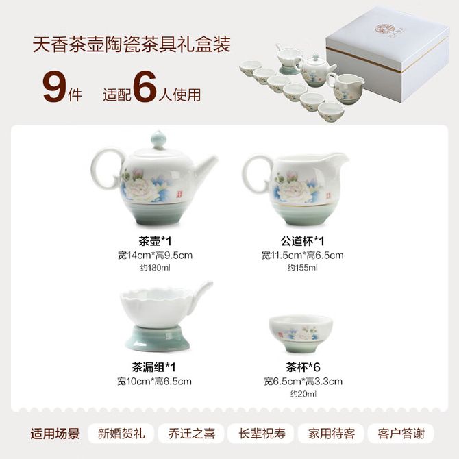 苏氏陶瓷/SUSHI CERAMICS 茶具套装天香茶壶茶杯陶瓷功夫茶具礼盒装 沿袭传统的美学元素设计 造型经典 有其独特的古韵气息 兑换价格 12600 里程 会员卡别 终身白金卡 白金卡 金卡 银卡 普通卡 儿童卡 服务 由 赛诺厨具 发货并提供售后 颜色: 其他 购买数量: 件 库存件 配送地址: 立即购买 加入购物车 成功添加到购物车 关闭 购物车共有 种商品 总金额为: