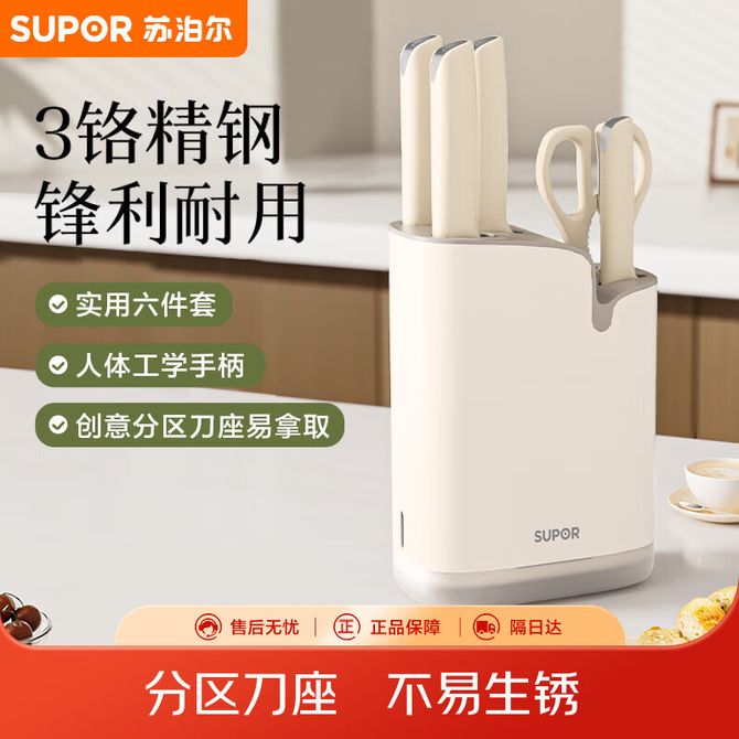 苏泊尔(SUPOR) 刀具六件套30CR13精钢 悦系列TK25008E 分区分刀 通风底座可拆洗 厨房菜刀组套家用菜刀多用刀斩切刀剪刀 兑换价格 8700 里程 会员卡别 终身白金卡 白金卡 金卡 银卡 普通卡 儿童卡 服务 由 人人余厨具专营店 发货并提供售后 颜色: 白色 购买数量: 件 库存件 配送地址: 立即购买 加入购物车 成功添加到购物车 关闭 购物车共有 种商品 总金额为: 组合销售 产品介绍 产品规格 售后服务 产品咨询 发现好货 张小泉 不锈钢折叠便携水果刀精磨刃口SK-2 1100 里程 愉家菜刀专用快速磨刀器 家用三段精磨口多功能磨刀石K133 1100 里程 苏泊尔supor 厨房刀具不锈钢套装 尖峰系列7件套刀.TK1520Q 14800 里程 双立人(ZWILLING) 水果刀削皮刀刮皮刀家用小刀多功能蔬果刀刀具Enjoy厨刀8cm 3300 里程 张小泉 玲珑系列不锈钢水果刀D20794000 1100 里程