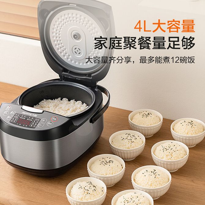 组合销售 产品介绍 产品规格 售后服务 产品咨询 发现好货 苏泊尔(SUPOR) 电饭煲电饭锅4L大容量 不粘内胆4-6个人前置大屏面板24小时预约上蒸下煮多功能家用智能SF40FC0063 7700 里程 美菱/MELNG 电饭煲3L触控式预约定时MF-LC3005 4400 里程 美的(Midea) 电饭煲 家用3L智能预约多功能电饭锅小型1-4人煮饭锅智能 白色 MB-FB30M161 7800 里程 苏泊尔(SUPOR) 迷你电饭煲家用电饭锅2-3人3L小容量蓝钻不粘内胆快煮饭功能智能预约小型多功能SF30FC0187 6100 里程 美的/Midea 电饭煲电饭锅3-4个人家用4L大容量聚能釜金属机身大火力米饭锅【升级焖香阀】RE417 8700 里程