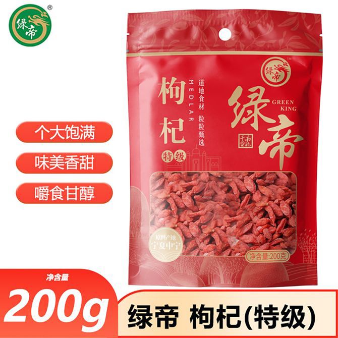 绿帝 枸杞(特级)200g 颗颗精选 优质枸杞 自然清香 煲汤泡水 源自宁夏中宁 严苛挑选 口感香甜 兑换价格 1500 里程 会员卡别 终身白金卡 白金卡 金卡 银卡 普通卡 儿童卡 服务 由 清益食品专营店 发货并提供售后 规格: 袋装 购买数量: 件 库存件 配送地址: 立即购买 加入购物车 成功添加到购物车 关闭 购物车共有 种商品 总金额为: