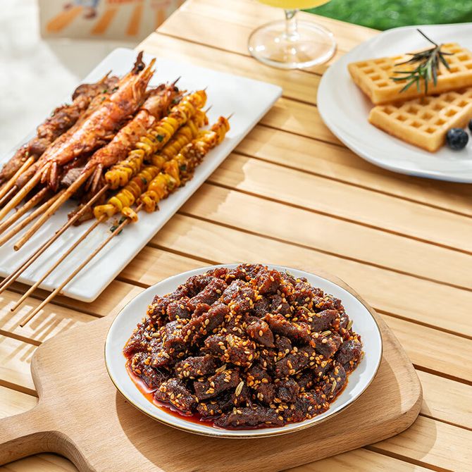 组合销售 产品介绍 产品规格 售后服务 产品咨询 发现好货 蒙都 风干牛肉干 500g (原味/五香/孜然/香辣)下单备注口味 新老包装随机 7000 里程 蒙都 酱牛肉200g*2袋 卤牛肉 熟食 内蒙古特产 五香真空包装熟牛肉 4100 里程 百草味 白芝麻猪肉脯100g 休闲零食肉干肉脯 1100 里程 百草味 原切牛肉片50g*1袋 牛肉干休闲零食 特产小吃肉干 1500 里程 三只松鼠(Three Squirrels) 蜀香牛肉麻辣味肉脯即食卤味牛肉 100gx2袋 1300 里程