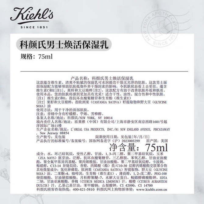 KIEHL'S 科颜氏男士保湿乳液75ml 补水保湿清爽 原装正品 兑换价格 15700 里程 会员卡别 终身白金卡 白金卡 金卡 银卡 普通卡 儿童卡 服务 由 恩伊美妆 发货并提供售后 化妆品容量: 75g/ml 购买数量: 件 库存件 配送地址: 立即购买 加入购物车 成功添加到购物车 关闭 购物车共有 种商品 总金额为: 组合销售 产品介绍 产品规格 售后服务 产品咨询 发现好货 娇兰 (GUERLAIN )帝皇蜂姿丰盈修复眼霜 15ml 39200 里程 薇诺娜柔润保湿霜补水保湿80g 3500 里程 妮维雅 男士水活畅透润肤乳快速补水清透保湿乳液788630 2700 里程 欧莱雅(LOREAL) 男士劲能醒肤露润肤面霜 8重功效50ml (持久滋润保湿护肤霜) 5700 里程 欧莱雅 金致臻颜花蜜胶原轻乳霜30ml 保湿紧致 3400 里程