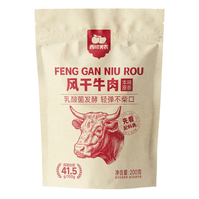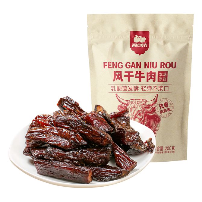 西域美农 益生菌风干牛肉干200g/袋 独立小包装 内蒙古手撕牛肉干 独立小包装 内蒙古手撕牛肉干 兑换价格 3000 里程 会员卡别 终身白金卡 白金卡 金卡 银卡 普通卡 儿童卡 服务 由 央联一家 发货并提供售后 规格: 袋装 购买数量: 件 库存件 配送地址: 立即购买 加入购物车 成功添加到购物车 关闭 购物车共有 种商品 总金额为: 组合销售 产品介绍 产品规格 售后服务 产品咨询 发现好货 蒙都 风干牛肉干 500g (原味/五香/孜然/香辣)下单备注口味 新老包装随机 7000 里程 蒙都 酱牛肉200g*2袋 卤牛肉 熟食 内蒙古特产 五香真空包装熟牛肉 4100 里程 百草味 白芝麻猪肉脯100g 休闲零食肉干肉脯 1100 里程 百草味 白芝麻猪肉脯100g*1袋 1100 里程 百草味 原切牛肉片50g*1袋 牛肉干休闲零食 特产小吃肉干 1500 里程