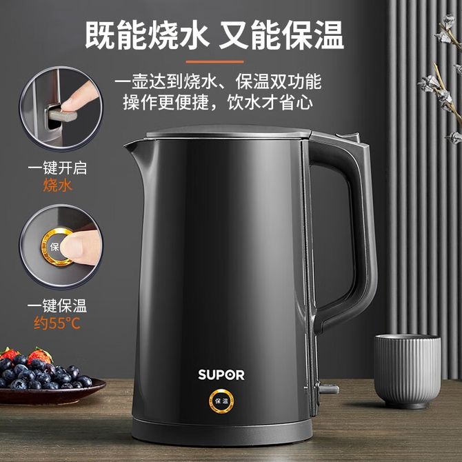 苏泊尔(SUPOR) 全钢无缝双层防烫电热水壶一键保温恒温电热水壶 SW-17S15A 双层无缝内胆 兑换价格 6500 里程 会员卡别 终身白金卡 白金卡 金卡 银卡 普通卡 儿童卡 服务 由 鑫城家电 发货并提供售后 颜色: 其他 购买数量: 件 库存件 配送地址: 立即购买 加入购物车 成功添加到购物车 关闭 购物车共有 种商品 总金额为: 组合销售 产品介绍 产品规格 售后服务 产品咨询 发现好货 苏泊尔(SUPOR)电水壶 1.7L 不锈钢/YL SW-17S13A 5700 里程 志高/Chigo 电水壶烧水壶1.8L大容量电热水壶双层防烫自动断电家用烧水开水壶不锈钢 电水壶 DC-A18F 1900 里程 美的/Midea 电热水壶家用大容量烧水壶热水壶双层防烫电水壶304不锈钢内胆自动断电分离式拔盖 MK-SH15X1-102 3000 里程 小熊/Bear 电水壶家用烧水壶 不锈钢自动断电恒温热水壶保温一体电热水壶1.5L容量 3500 里程 小熊/Bear 烧水壶电水壶热水壶电热水壶开水壶304不锈钢内胆双层防烫1.5L大容量ZDH-Q15U8 3000 里程