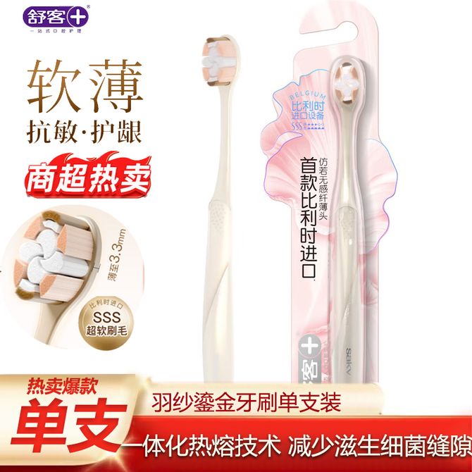 舒客 羽纱鎏金牙刷单支装(SSS极柔软毛)细微深入 柔丝护龈深度细致360°清洁 适用人群:牙龈出血/敏感/牙龈脆弱人群(颜色、新旧款随机发货) 兑换价格 1100 里程 会员卡别 终身白金卡 白金卡 金卡 银卡 普通卡 儿童卡 服务 由 京狮文化生活馆 发货并提供售后 牙刷牙线规格: 单只装 购买数量: 件 库存件 配送地址: 立即购买 加入购物车 成功添加到购物车 关闭 购物车共有 种商品 总金额为: 组合销售 产品介绍 产品规格 售后服务 产品咨询 发现好货 舒客舒克竹炭洁齿牙线棒50支*2盒成人坚韧扁线牙签方便携随身盒 1100 里程 高露洁(Colgate) 宽柔绵绵丝牙刷轻适刷双支装 1100 里程 舒客 炭丝能量牙刷 细软毛护龈竹炭刷丝全新升级家庭囤货多支装 炭丝牙刷 4支 1100 里程 海氏海诺 牙线棒独立包装100支*1袋 深入清洁 不伤牙龈 1300 里程 狮王 (Lion )细齿洁抗菌儿童牙刷 细毛软毛 颜色随机发 2000 里程