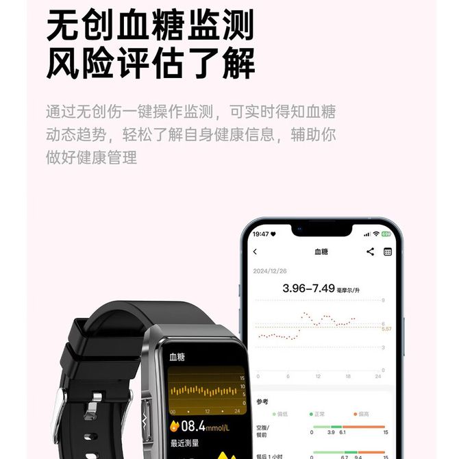 免扎针测血糖血压监测智能手表ECG心电图血氧无创血糖仪测血脂运动智能健康通话手环