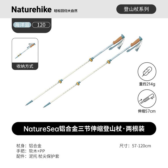 Naturehike NatureSea系列铝合金三节伸缩超轻伸缩户外爬山登山杖 两根 新品 海蓝/57-120cm两根 兑换价格 9100 里程 会员卡别 终身白金卡 白金卡 金卡 银卡 普通卡 儿童卡 服务 由 Natetoile 户外旗舰店 发货并提供售后 颜色: 浅蓝色 购买数量: 件 库存件 配送地址: 立即购买 加入购物车 成功添加到购物车 关闭 购物车共有 种商品 总金额为:
