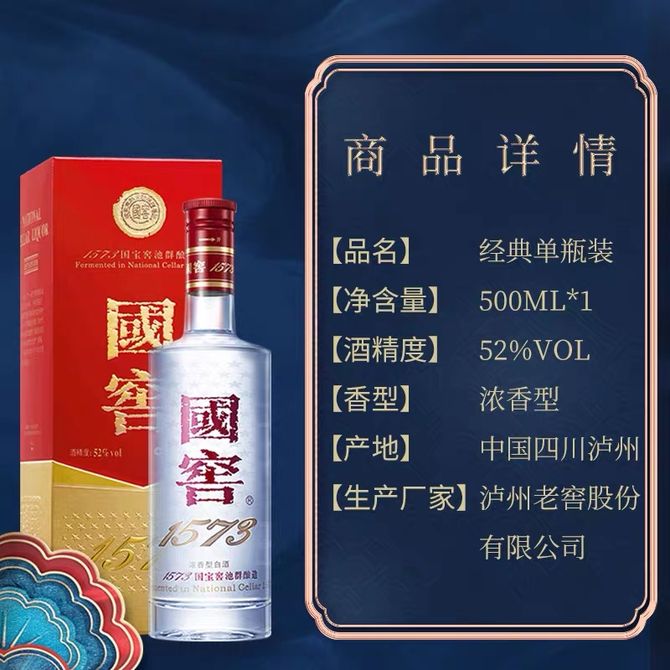 国窖 1573 泸州老窖 浓香型白酒 52度经典装 6瓶装 送礼收藏皆宜 国窖 1573 泸州老窖 浓香型白酒 52度经典装 6瓶装 送礼收藏皆宜 兑换价格 307000 里程 会员卡别 终身白金卡 白金卡 金卡 银卡 普通卡 未满18岁禁止饮酒,过量饮酒有害健康 服务 由 酒圈网 发货并提供售后 规格: 组合 购买数量: 件 库存件 配送地址: 立即购买 加入购物车 成功添加到购物车 关闭 购物车共有 种商品 总金额为: 组合销售 产品介绍 产品规格 售后服务 产品咨询 发现好货 红星蓝瓶二锅头绵柔8年陈酿53度750ml 清香型 2600 里程 红星蓝瓶二锅头绵柔8年陈酿53度750ml*6瓶 整箱装 清香型 13800 里程 牛栏山二锅头珍品十五年地道北京味 45度 400ml单瓶装 3000 里程 塔牌 花雕酒 三年陈绍兴酒500ml*2瓶装 特制黄酒 2200 里程 红星蓝瓶二锅头绵柔8年陈酿53度750ml*2瓶装 清香型 4700 里程