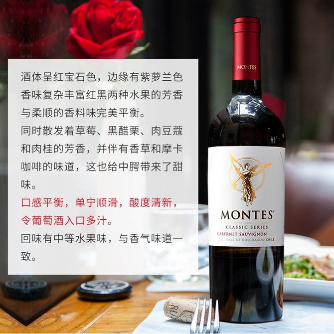 MONTES 蒙特斯天使赤霞珠红葡萄酒750ml*6瓶装 送礼宴请优选红酒(附礼袋酒具) 蒙特斯天使赤霞珠葡萄酒750ml*6瓶装 送礼宴请优选 智利原瓶进口红酒 兑换价格 23800 里程 会员卡别 终身白金卡 白金卡 金卡 银卡 普通卡 未满18岁禁止饮酒,过量饮酒有害健康 服务 由 酒圈网 发货并提供售后 规格: 组合 购买数量: 件 库存件 配送地址: 立即购买 加入购物车 成功添加到购物车 关闭 购物车共有 种商品 总金额为: 组合销售 产品介绍 产品规格 售后服务 产品咨询 发现好货 长城特选5年橡木桶解百纳干红葡萄酒 2900 里程 长城(GreatWall)华夏长城精选级赤霞珠干红葡萄酒 750ml 2000 里程 长城(GreatWall)红酒 特酿3年解百纳干红葡萄酒 整箱装 750ml*6瓶 7000 里程 长城92干红葡萄酒 赤霞珠干红葡萄酒750ml*1瓶 11600 里程 张裕 金奖白兰地 单瓶洋酒700ml 38度 2000 里程