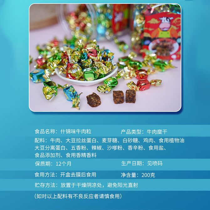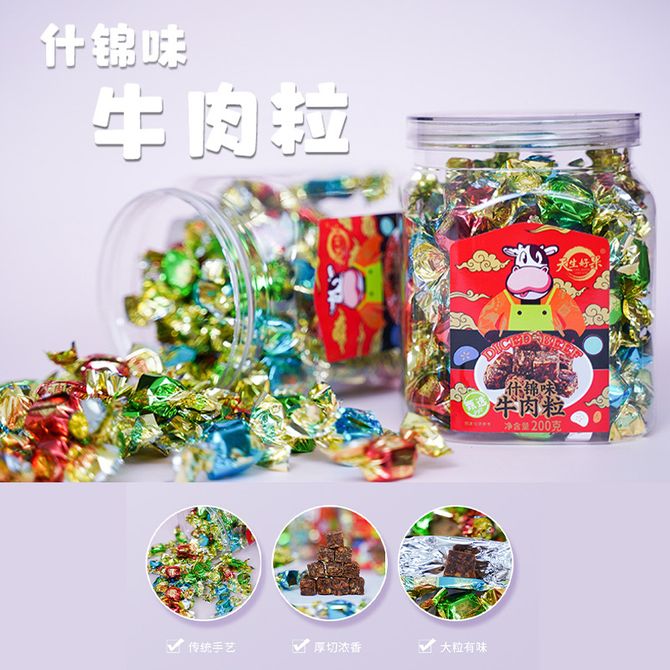 天生好果/TIAN SHENG HAO GUO 什锦牛肉粒200g 熟食小吃休闲零食牛肉粒 独立小包装 配置:什锦牛肉粒200g/罐;传统手艺 厚切浓香 大粒有味 兑换价格 1100 里程 会员卡别 终身白金卡 白金卡 金卡 银卡 普通卡 儿童卡 服务 由 壮乡优品生活馆 发货并提供售后 规格: 罐装 购买数量: 件 库存件 配送地址: 立即购买 加入购物车 成功添加到购物车 关闭 购物车共有 种商品 总金额为: 组合销售 产品介绍 产品规格 售后服务 产品咨询 发现好货 蒙都 风干牛肉干 500g (原味/五香/孜然/香辣)下单备注口味 新老包装随机 7000 里程 蒙都 酱牛肉200g*2袋 卤牛肉 熟食 内蒙古特产 五香真空包装熟牛肉 4100 里程 百草味 白芝麻猪肉脯100g 休闲零食肉干肉脯 1100 里程 百草味 原切牛肉片50g*1袋 牛肉干休闲零食 特产小吃肉干 1500 里程 三只松鼠(Three Squirrels) 猪肉脯自然片 肉干肉脯休闲零食特产小吃150g/袋*2袋 1700 里程
