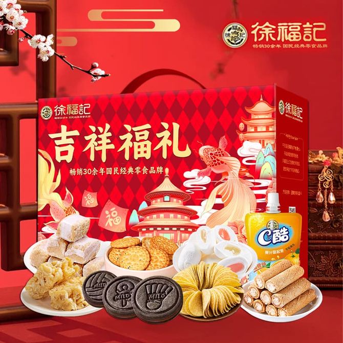 徐福记 吉祥福礼988g包含8种小吃零食节日送礼 多种零食搭配 满口醇香酥脆 兑换价格 4300 里程 会员卡别 终身白金卡 白金卡 金卡 银卡 普通卡 儿童卡 服务 由 连年有余食品专营店 发货并提供售后 规格: 盒装 购买数量: 件 库存件 配送地址: 立即购买 加入购物车 成功添加到购物车 关闭 购物车共有 种商品 总金额为: 组合销售 产品介绍 产品规格 售后服务 产品咨询 发现好货 稻香村 桃酥640g 老式宫廷饼干 点心传统糕点 1600 里程 鲜记 每日坚果7日装140g 混合坚果果干坚果炒货孕妇营养健康休闲零食坚果礼盒 1300 里程 稻香村 蜂蜜蛋糕330g/袋*2 糕点 小吃 早餐食品 稻香村蜂蜜蛋糕 早餐面包蛋糕 1300 里程 沃隆每日坚果B款750g礼盒(25克*30) 6100 里程 百草味 手撕面包1kg*1箱 休闲零食 1300 里程