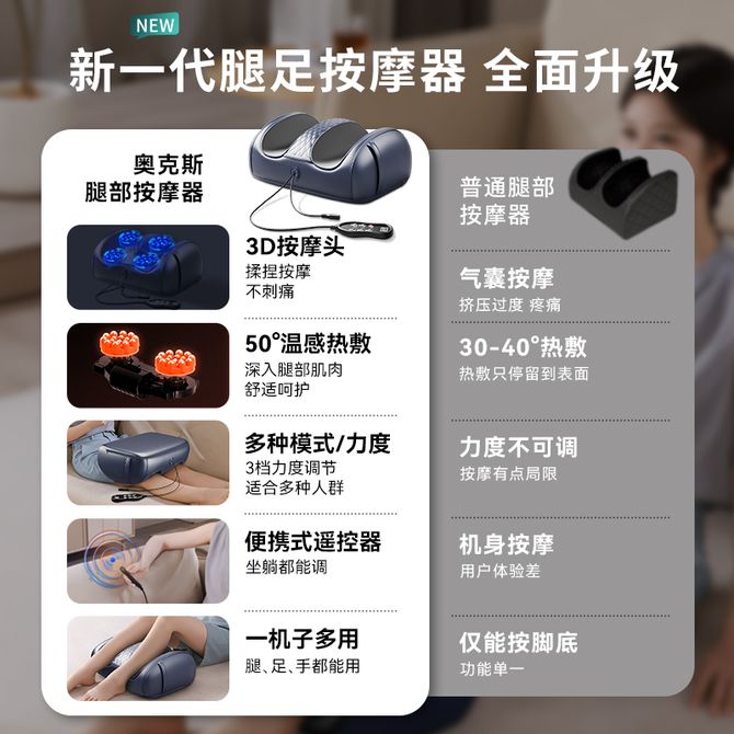 奥克斯/AUX 4头足底按摩器AZA-12D-806 腿部按摩器足疗机小腿肌肉按摩器足底脚底按摩全自动揉捏 兑换价格 10300 里程 会员卡别 终身白金卡 白金卡 金卡 银卡 普通卡 儿童卡 服务 由 榆康淼电器 发货并提供售后 颜色: 深蓝色 购买数量: 件 库存件 配送地址: 立即购买 加入购物车 成功添加到购物车 关闭 购物车共有 种商品 总金额为: 组合销售 产品介绍 产品规格 售后服务 产品咨询 发现好货 鹰伦 U型颈椎按摩仪SKT-Y8807 白色 3400 里程 亚摩斯/Amos 多功能筋膜枪 小巧轻盈携带方便智能 运动护理修复神器AS-JM256 3900 里程 践程JeoyCosy 脉冲颈椎按摩仪 热敷颈部按摩器 智能家用理疗肌肉放松健康护理肩颈护颈仪 3500 里程 SKG 筋膜枪便携按摩仪专业级筋膜枪肌肉按摩器全身颈椎肩颈腰腿运动 8700 里程 倍轻松(breo)眼部按摩器 眼睛按摩仪眼保仪 恒温热敷眼罩 EM 003 10400 里程