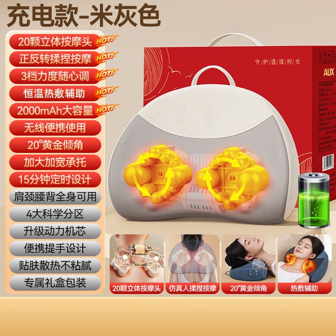 奥克斯/AUX 弯月枕充电款LL-Y4 按摩枕颈部按摩仪按摩器腰部按摩垫全身自动揉捏热敷 兑换价格 7000 里程 会员卡别 终身白金卡 白金卡 金卡 银卡 普通卡 儿童卡 服务 由 榆康淼电器 发货并提供售后 颜色: 蓝色 米色 购买数量: 件 库存件 配送地址: 立即购买 加入购物车 成功添加到购物车 关闭 购物车共有 种商品 总金额为: 组合销售 产品介绍 产品规格 售后服务 产品咨询 发现好货 鹰伦 U型颈椎按摩仪SKT-Y8807 白色 3400 里程 亚摩斯/Amos 多功能筋膜枪 小巧轻盈携带方便智能 运动护理修复神器AS-JM256 3900 里程 践程JeoyCosy 脉冲颈椎按摩仪 热敷颈部按摩器 智能家用理疗肌肉放松健康护理肩颈护颈仪 3500 里程 SKG 筋膜枪便携按摩仪专业级筋膜枪肌肉按摩器全身颈椎肩颈腰腿运动 8700 里程 奥克斯/AUX 6头筋膜枪-AJM-74A327充电款 4800 里程