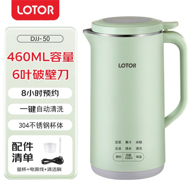 LOTOR 豆浆机 迷你460ml 破壁机 全自动免煮五谷杂粮免洗豆浆机 DJJ-50 460毫升容量;6叶破壁刀片;8小时预约;6大功能; 兑换价格 6000 里程 会员卡别 终身白金卡 白金卡 金卡 银卡 普通卡 儿童卡 服务 由 小枫叶专营店 发货并提供售后 颜色: 绿色 购买数量: 件 库存件 配送地址: 立即购买 加入购物车 成功添加到购物车 关闭 购物车共有 种商品 总金额为: