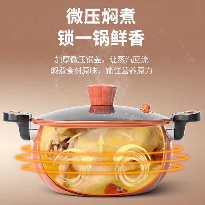 美菱/MELNG 微压料理锅 26cm 微压不粘汤南瓜锅快速烹饪煲锅 轻巧鲜煮义,一 锅享百味,麦饭石不粘技术,煮粥煮汤不易糊底 兑换价格 3500 里程 会员卡别 终身白金卡 白金卡 金卡 银卡 普通卡 儿童卡 服务 由 众生缘(江苏)互联网科技有限公司 发货并提供售后 颜色: 其他 购买数量: 件 库存件 配送地址: 立即购买 加入购物车 成功添加到购物车 关闭 购物车共有 种商品 总金额为: 组合销售 产品介绍 产品规格 售后服务 产品咨询 发现好货 荣事达/Royalstar 煲锅 砂锅煲汤熬药煮粥焖饭砂锅陶瓷炖汤沙锅家用养生汤锅瓦煲瓦罐4.6L 3900 里程 爱仕达(ASD) 煲锅 砂锅煲汤炖锅2.5L陶瓷煲仔饭砂锅燃气灶明火专用 4800 里程 炊大皇/Cookerking 砂锅5L耐高温陶瓷煲多用炖锅汤锅家用养生煲陶瓷锅明火煤燃气灶专用TCXW5002 4400 里程 炊大皇/Cookerking 砂锅 6L耐高温陶瓷煲多用炖锅汤锅 家用养生煲陶瓷锅 明火煤燃气灶专用TCXW6003 5300 里程 苏泊尔(SUPOR) 砂锅煲汤锅炖锅4.5L养生煲耐高温不开裂陶瓷煲EB45MAT01 6000 里程