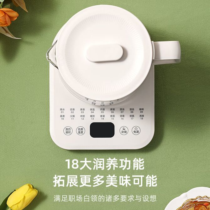 组合销售 产品介绍 产品规格 售后服务 产品咨询 发现好货 九阳/Joyoung 养生壶1.5L茶具电茶壶煮茶壶花茶壶玻璃煮茶器煎药壶中药锅药膳电水壶烧水壶 3900 里程 九阳/Joyoung 养生壶迷你玻璃花茶壶煮茶器 12大功能11档温度 电水壶热水壶烧水壶 1.5L DGD1506BQ 3900 里程 美的/Midea 养生壶 1.5L家用多功能小型全自动办公室烧水壶加厚玻璃煮茶热水壶 MK-YS15P201 4200 里程 美的/Midea 养生壶 1.5L家用养生壶全自动玻璃烧水壶24h预约烧水壶12小时防干烧保护智能恒温 MK-YS15P202 3700 里程 美的/Midea 养生壶 1.5L全自动电热水壶 24h预约12小时智能恒温 14大功能11档控温 花茶壶煮茶器MK-Y12Q 3500 里程