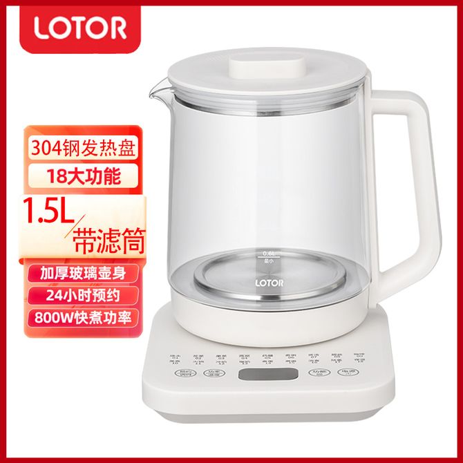 LOTOR 养生壶 【带滤筒】1.5L容量 可调式自动保温恒温养身壶 高硼硅玻璃壶身 304钢发热盘 WH16 1.5L容量;304钢发热盘;24小时预约;带滤筒; 兑换价格 3700 里程 会员卡别 终身白金卡 白金卡 金卡 银卡 普通卡 儿童卡 商品已下架 1. 请联系卖家咨询 2. 逛逛小枫叶专营店选择其他商品 组合销售 产品介绍 产品规格 售后服务 产品咨询 发现好货 九阳/Joyoung 养生壶1.5L茶具电茶壶煮茶壶花茶壶玻璃煮茶器煎药壶中药锅药膳电水壶烧水壶 3900 里程 九阳/Joyoung 养生壶迷你玻璃花茶壶煮茶器 12大功能11档温度 电水壶热水壶烧水壶 1.5L DGD1506BQ 3900 里程 美的/Midea 养生壶 1.5L家用多功能小型全自动办公室烧水壶加厚玻璃煮茶热水壶 MK-YS15P201 4200 里程 美的/Midea 养生壶 1.5L家用养生壶全自动玻璃烧水壶24h预约烧水壶12小时防干烧保护智能恒温 MK-YS15P202 3700 里程 美的/Midea 养生壶 1.5L全自动电热水壶 24h预约12小时智能恒温 14大功能11档控温 花茶壶煮茶器MK-Y12Q 3500 里程