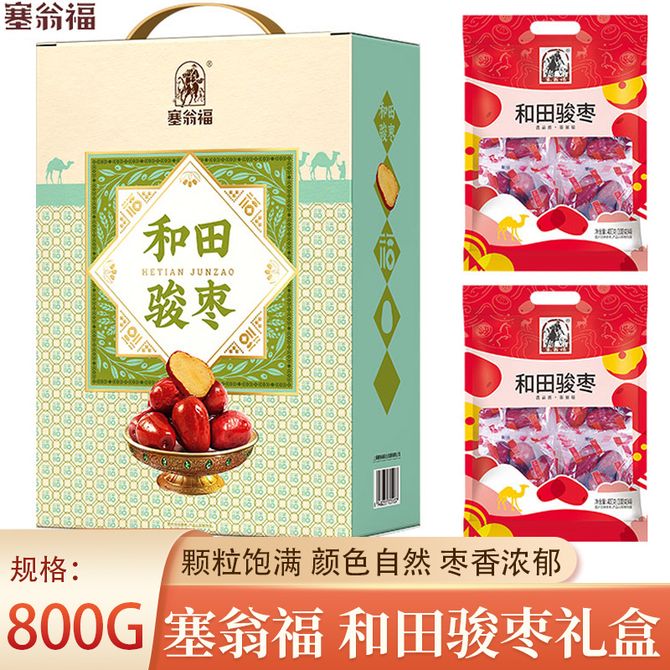 塞翁福 和田骏枣礼盒800g 甄选新疆红枣 颗粒饱满枣香浓郁 佳节送礼礼盒装