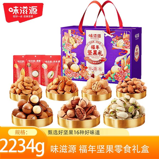 味滋源 福年坚果零食礼盒2234g夏威夷果开心果坚果炒货猪肉脯大礼包 福年坚果零食礼盒2234g 兑换价格 6500 里程 会员卡别 终身白金卡 白金卡 金卡 银卡 普通卡 儿童卡 服务 由 广西桂人礼互联网科技有限公司 发货并提供售后 规格: 礼盒 购买数量: 件 库存件 配送地址: 立即购买 加入购物车 成功添加到购物车 关闭 购物车共有 种商品 总金额为: 组合销售 产品介绍 产品规格 售后服务 产品咨询 发现好货 西域美农 新疆薄皮核桃500g/袋 新疆特产原味 薄皮核桃 1300 里程 西域美农 烘焙腰果200g 坚果特产 休闲零食 带皮腰果仁 1600 里程 味滋源 紫皮腰果2袋装 每袋100g 1100 里程 沃隆每日坚果(A)175g盒装 1700 里程 百草味 坚果炒货夏威夷果100g*1袋 1100 里程