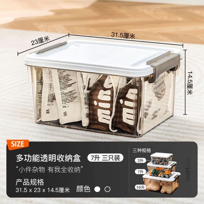 禧天龙 时尚小件收纳箱透明收纳箱衣物袜子整理箱家用药箱内衣玩具分类储物箱 7L 三件 高颜值透明灰收纳箱 家用小件分类收储 加厚材质 抗压承重 叠放稳固 优选材质安全无异味 兑换价格 2700 里程 会员卡别 终身白金卡 白金卡 金卡 银卡 普通卡 儿童卡 服务 由 快乐集势家居日用专营店 发货并提供售后 颜色: 灰色 购买数量: 件 库存件 配送地址: 立即购买 加入购物车 成功添加到购物车 关闭 购物车共有 种商品 总金额为: 组合销售 产品介绍 产品规格 售后服务 产品咨询 发现好货 佳帮手 60L大号收纳箱整理箱S01-HN60 1300 里程 美国pack all 男士洗漱包 大容量分隔收纳洗护用品收纳包手提式商务运动洗漱用品收纳包 黑色 1800 里程 蕉趣/BANANA TRIP 旅行收纳袋套装 衣物整理收纳包鞋子内衣收纳束口袋 4件套 3900 里程 百露(BELO) 20斤装密封米桶 家用储米箱带轮 大米面粉储物箱 米缸盒厨房防潮防虫 3000 里程 美国pack all折叠式便携行李车家用折叠拖车小推车拉货买菜购物车手拉车拉杆车旅行出差行李车承重30KG黑色 5700 里程