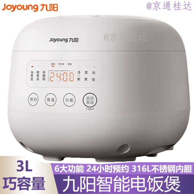 九阳/Joyoung 电饭煲煮饭煲3L容量家用电饭锅多功能智能预约煲汤煮饭锅 6大功能 24小时预约 316L不锈钢内胆 3L巧容量 兑换价格 10400 里程 会员卡别 终身白金卡 白金卡 金卡 银卡 普通卡 儿童卡 服务 由 广西自贸区京通桂达科技发展有限公司 发货并提供售后 颜色: 其他 购买数量: 件 库存件 配送地址: 立即购买 加入购物车 成功添加到购物车 关闭 购物车共有 种商品 总金额为: 组合销售 产品介绍 产品规格 售后服务 产品咨询 发现好货 苏泊尔(SUPOR) 电饭煲电饭锅4L大容量 不粘内胆4-6个人前置大屏面板24小时预约上蒸下煮多功能家用智能SF40FC0063 8300 里程 奥克斯/AUX 电饭煲3L电饭锅 2-3人小型预约智能电饭煲VK-309F2 5100 里程 苏泊尔(SUPOR) 迷你电饭煲家用电饭锅2-3人3L小容量蓝钻不粘内胆快煮饭功能智能预约小型多功能SF30FC0187 6100 里程 美菱/MELNG 电饭煲3L触控式预约定时MF-LC3005 4400 里程 苏泊尔(SUPOR) 煮饭煮粥智能预约多功能一锅多用小型微压电饭锅30FC0187 7200 里程