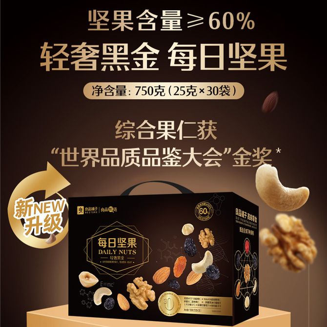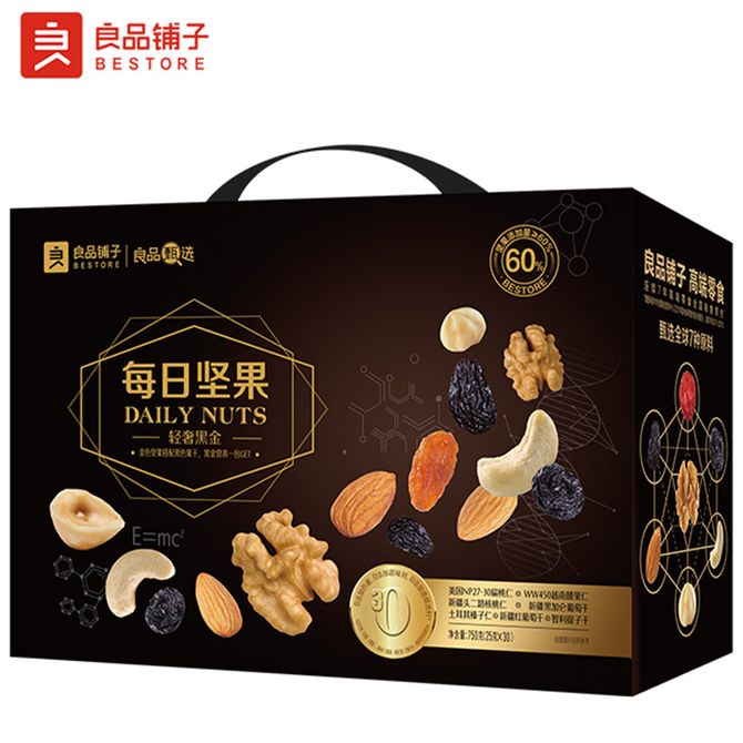 良品铺子 轻奢黑金每日坚果礼盒750g 休闲零食坚果果干年货礼盒 春节节日送礼佳品