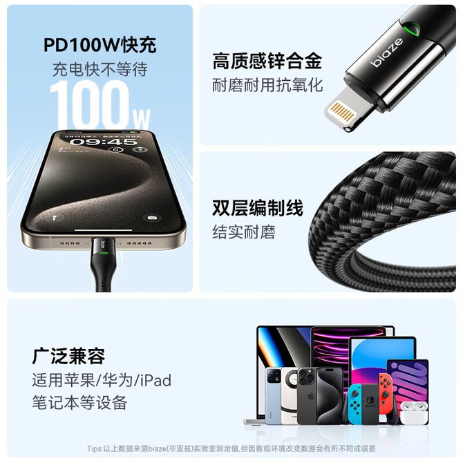 毕亚兹/Biaze 双头Type-C数据线 100WPD超快充充电线 1.5米 100WPD超快充数据线 数据传输 快速充电 兑换价格 1300 里程 会员卡别 终身白金卡 白金卡 金卡 银卡 普通卡 儿童卡 服务 由 上海亨奈电器科技有限公司 发货并提供售后 颜色: 黑色 购买数量: 件 库存件 配送地址: 立即购买 加入购物车 成功添加到购物车 关闭 购物车共有 种商品 总金额为: 组合销售 产品介绍 产品规格 售后服务 产品咨询 发现好货 雷摄 66W超级快充线 5A数据线一拖三充电线 1.2米苹果/Type-c/安卓三合一快充线华为 车载手机快充电源线 LS-366 1300 里程 倍思(Baseus) 倍思(Baseus) 一拖三数据线3.5A快充 苹果/Type-c/安卓手机一拖三充电线1米 适用苹果华为小米三星 1100 里程 品胜(PISEN) 数据线三合一 苹果Type-c安卓手机充电线1.2米快充 1600 里程 品胜 牛仔布 苹果数据线 牛仔布铝合金数据充电线 2100 里程 品胜(PISEN) 三合一数据线多头usb多功能数据车载充电线 3.5A大功率一拖三苹果/安卓/Type-C 适用iphone安卓苹果华为 1400 里程