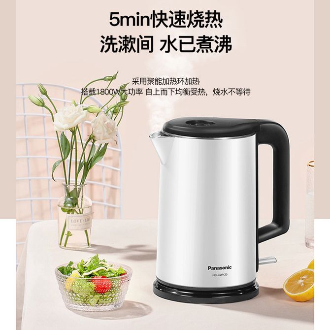 松下/Panasonic 电热水壶 双层隔热防烫安全防护快速烧热一体成型工艺易清洁速热电热水壶 304食品级不锈钢内胆 三重安全防护 广角开口 1.5L容量 兑换价格 5500 里程 会员卡别 终身白金卡 白金卡 金卡 银卡 普通卡 儿童卡 服务 由 广西桂福礼供应链管理有限公司 发货并提供售后 颜色: 其他 购买数量: 件 库存件 配送地址: 立即购买 加入购物车 成功添加到购物车 关闭 购物车共有 种商品 总金额为: