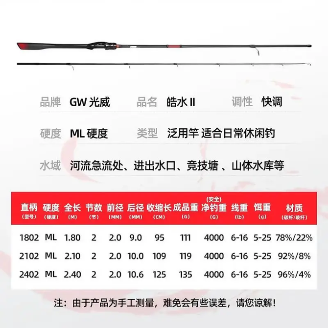 光威(GW) 皓水二代路亚直柄钓竿 皓水二代路亚直柄裸竿 兑换价格 3800-4600 里程 会员卡别 终身白金卡 白金卡 金卡 银卡 普通卡 儿童卡 服务 由 盛为运动户外专营店 发货并提供售后 钓竿长度: 2.4米 2.1米 1.8米 购买数量: 件 库存件 配送地址: 立即购买 加入购物车 成功添加到购物车 关闭 购物车共有 种商品 总金额为: 组合销售 产品介绍 产品规格 售后服务 产品咨询 发现好货 光威闪电小矶短节便携矶钓竿超轻超硬矶竿碳素远投钓鱼竿手海两用 4700-7500 里程 佳钓尼 伏魔宗鱼竿鲫鱼竿 钓鱼竿手竿 极轻极硬 6000-13000 里程 光威(GW) 黄蜘蛛二代路亚竿ml调泛用碳素超轻硬鱼竿fuji-o环翘嘴鲈鳜鱼黄蜘蛛二代ML直柄 5900-6700 里程 佳钓尼 短节溪流竿 鱼竿手竿 超短超轻超硬钓鱼竿 渔具 强悍腰身( 新魂溪流竿 ) 3500-7000 里程 光威(GW) 影峰休闲二代鱼竿台钓竿28调4H碳素超轻超硬手杆综合竿 5300-10100 里程