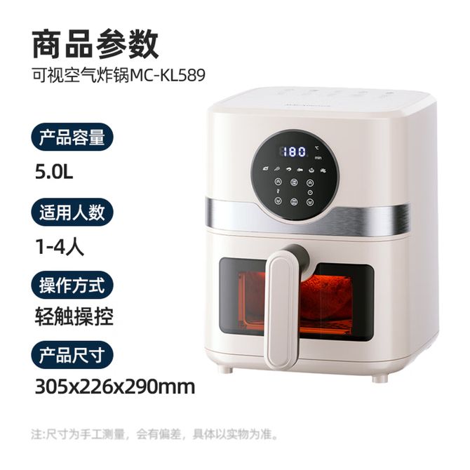 MACAIIROOS MC-KL589 空气炸锅家用新款5L大容量可视免翻面电炸锅多功能电烤箱 3D补水 倍嫩锁鲜 1200W大功率烘炸不易焦糊夹生 兑换价格 10400 里程 会员卡别 终身白金卡 白金卡 金卡 银卡 普通卡 儿童卡 服务 由 弘济家电 发货并提供售后 颜色: 白色 购买数量: 件 库存件 配送地址: 立即购买 加入购物车 成功添加到购物车 关闭 购物车共有 种商品 总金额为: