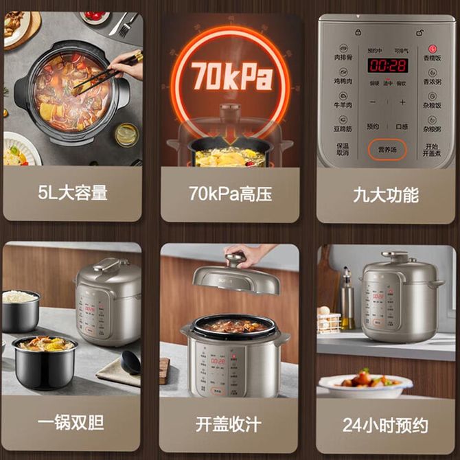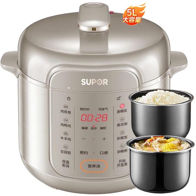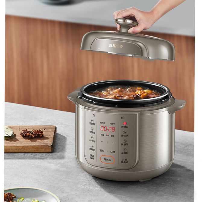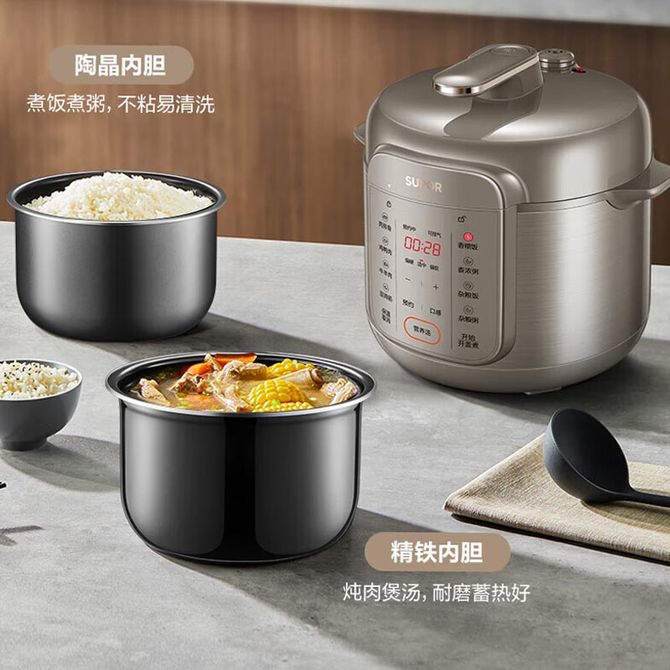 组合销售 产品介绍 产品规格 售后服务 产品咨询 发现好货 苏泊尔(SUPOR)电压力锅 6升大容量 智能触控 球釜双胆 开盖收汁 一键排压 SY-60YC8001Q 高压锅 16900 里程 美的/Midea 电压力锅家用5L大容量多功能高压锅双胆一键收汁智能预约不粘电高压锅电饭锅煮粥煲汤锅 一锅双胆【一键收汁入味】 YL50M1-702 10600 里程 苏泊尔(SUPOR) 5L电压力锅家用电高压锅双胆高压电饭锅煮饭智能预约 SY-50YC8186 11300 里程 美的/Midea 电压力锅 【一锅双胆】5L全自动家用智能预约 上蒸下煮 不粘双胆煲汤炖肉 YL50Q3-451 10900 里程 美的/Midea 电压力锅 高压锅家用电压力煲智能预约电饭煲大容量多功能定时预约电饭煲3-8人单胆旋钮款4L MY-E4809 8700 里程