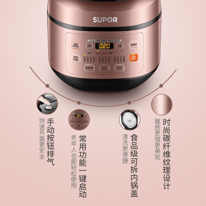 组合销售 产品介绍 产品规格 售后服务 产品咨询 发现好货 苏泊尔(SUPOR)电压力锅 6升大容量 智能触控 球釜双胆 开盖收汁 一键排压 SY-60YC8001Q 高压锅 16900 里程 美的/Midea 电压力锅家用5L大容量多功能高压锅双胆一键收汁智能预约不粘电高压锅电饭锅煮粥煲汤锅 一锅双胆【一键收汁入味】 YL50M1-702 10600 里程 苏泊尔(SUPOR) 5L电压力锅家用电高压锅双胆高压电饭锅煮饭智能预约 SY-50YC8186 11300 里程 美的/Midea 电压力锅 【一锅双胆】5L全自动家用智能预约 上蒸下煮 不粘双胆煲汤炖肉 YL50Q3-451 10900 里程 美的/Midea 电压力锅 高压锅家用电压力煲智能预约电饭煲大容量多功能定时预约电饭煲3-8人单胆旋钮款4L MY-E4809 8700 里程