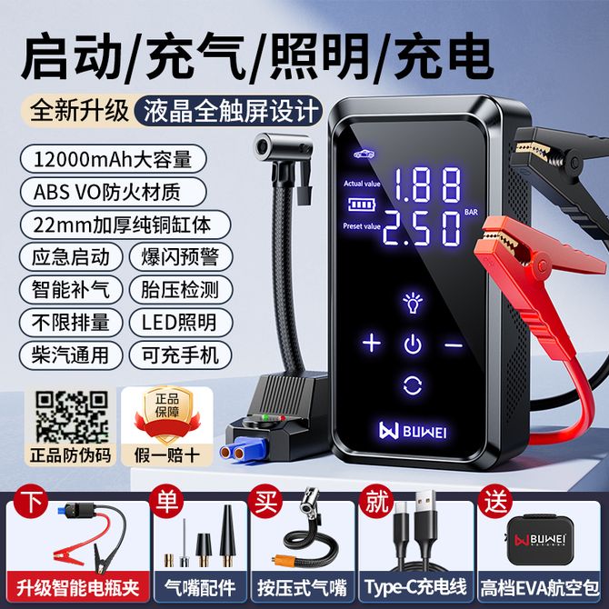 埠威 汽车应急启动电源搭电宝充气泵一体机车用电瓶多功能12v打火神器CP12 ZHZJEVA 防反智能夹+收纳包 兑换价格 13000 里程 会员卡别 终身白金卡 白金卡 金卡 银卡 普通卡 儿童卡 服务 由 蓝盏汽车用品专营店 发货并提供售后 颜色: 黑色 购买数量: 件 库存件 配送地址: 立即购买 加入购物车 成功添加到购物车 关闭 购物车共有 种商品 总金额为: