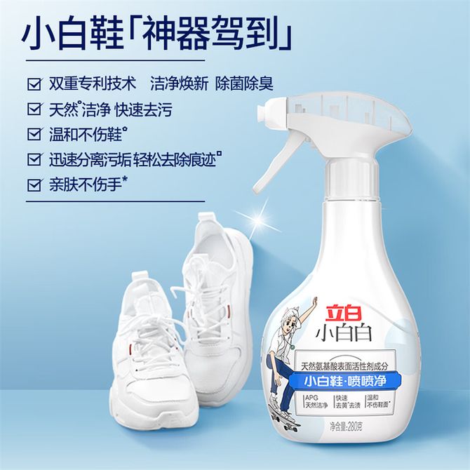 立白 小白白小白鞋清洁剂280g 天然洁净白鞋去污神器 温和不伤鞋 小白鞋清洁剂280g 兑换价格 1300 里程 会员卡别 终身白金卡 白金卡 金卡 银卡 普通卡 儿童卡 服务 由 本贝生活 发货并提供售后 净含量: 其他容量 清洁剂容量: 其他容量 购买数量: 件 库存件 配送地址: 立即购买 加入购物车 成功添加到购物车 关闭 购物车共有 种商品 总金额为: 组合销售 产品介绍 产品规格 售后服务 产品咨询 发现好货 蓝月亮 深层洁净洗衣液4斤 1kgx1瓶+500gx2补充装 薰衣草香 强效去渍 1500 里程 威露士/Walch La有氧洗洗衣液套装 4斤松木清香(瓶1L+袋500ml*2) 除菌除螨 1900 里程 威露士 洗衣液除菌机洗手洗家用除螨去污1L*1瓶 1500 里程 蓝月亮 亮白增艳洗衣液2斤 1kg*1瓶 1100 里程 蓝月亮 护理洗衣液去污去渍 保护衣物纤维和原色 薰衣草香 1kg*2瓶 持久留香 速溶易漂 温和配方 1500 里程