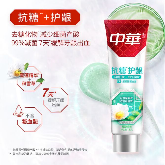 中华 牙膏抗糖护龈晨露青草味(130+20)g*2支【新旧包装随机发货】 下单规格:(130+20g)*2支(有效期截止到2027年1月4日,介意勿拍) 兑换价格 1300 里程 会员卡别 终身白金卡 白金卡 金卡 银卡 普通卡 儿童卡 服务 由 一览个护馆 发货并提供售后 化妆品容量: 套 购买数量: 件 库存件 配送地址: 立即购买 加入购物车 成功添加到购物车 关闭 购物车共有 种商品 总金额为: