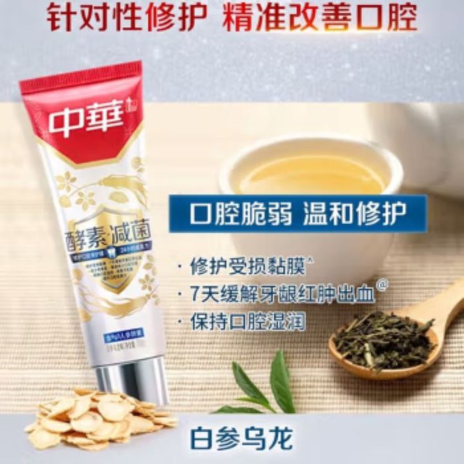 中华 酵素减菌牙膏清新口气去渍呵护口腔 白参乌龙味110克 下单规格:1支=110g(有效期截止到2026年5月24日,介意勿拍,短保商品拍一送一) 兑换价格 1300 里程 会员卡别 终身白金卡 白金卡 金卡 银卡 普通卡 儿童卡 服务 由 一览个护馆 发货并提供售后 化妆品容量: 110g/ml 购买数量: 件 库存件 配送地址: 立即购买 加入购物车 成功添加到购物车 关闭 购物车共有 种商品 总金额为: 组合销售 产品介绍 产品规格 售后服务 产品咨询 发现好货 云南白药牙膏单支清新口气呵护牙龈健康牙周冬青 活性肽165g 1500 里程 云南白药 健齿护龈改善牙龈问题清新口气留兰香型180g 1500 里程 云南白药 牙膏薄荷香型100g减轻牙龈问题清新口气祛除口腔异味 1100 里程 云南白药牙膏留兰香型180g 去黄牙垢口气清新减轻牙龈问题 1500 里程 云南白药 牙膏(薄荷清爽)230g 单支装 清新口气健齿护龈 经典清爽薄荷香型牙膏 1支装 1600 里程