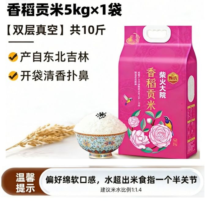 柴火大院 香稻贡米5kg真空装东北大米 香稻贡米5kg 兑换价格 3100 里程 会员卡别 终身白金卡 白金卡 金卡 银卡 普通卡 儿童卡 服务 由 烁烁食品店 发货并提供售后 规格: 袋装 购买数量: 件 库存件 配送地址: 立即购买 加入购物车 成功添加到购物车 关闭 购物车共有 种商品 总金额为: 组合销售 产品介绍 产品规格 售后服务 产品咨询 发现好货 金熊 泰国茉莉 香米 1kg 泰国原料进口 1300 里程 十月稻田当季新米辽河长粒香大米 5kg 东北大米 香米 粳米 十斤 2100 里程 源头说 五常有机稻花香新米 东北大米 2.5kg(双重防伪认证) 4200 里程 十月稻田 长粒香大米2.5kg 东北大米5斤 东北香米 1300 里程 稻可道雪地黑土东北珍珠大米5kg 1600 里程