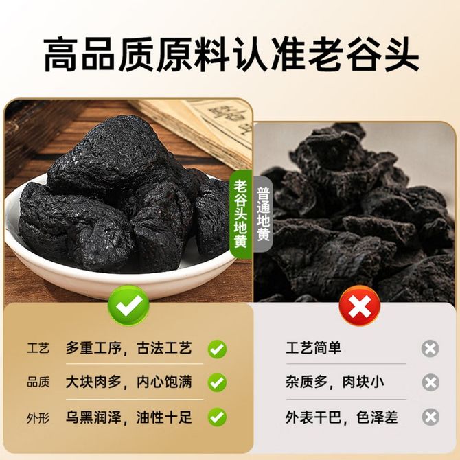 谷记老谷头/GUJILAOGUTOU 地黄400g 即食泡水五黑油亮肉质满满 老谷头地黄河南焦作正品怀地黄即食泡水养生乌黑油亮肉厚饱满大块 地黄400克 兑换价格 4100 里程 会员卡别 终身白金卡 白金卡 金卡 银卡 普通卡 儿童卡 服务 由 啊兔食品专营店 发货并提供售后 规格: 盒装 购买数量: 件 库存件 配送地址: 立即购买 加入购物车 成功添加到购物车 关闭 购物车共有 种商品 总金额为: