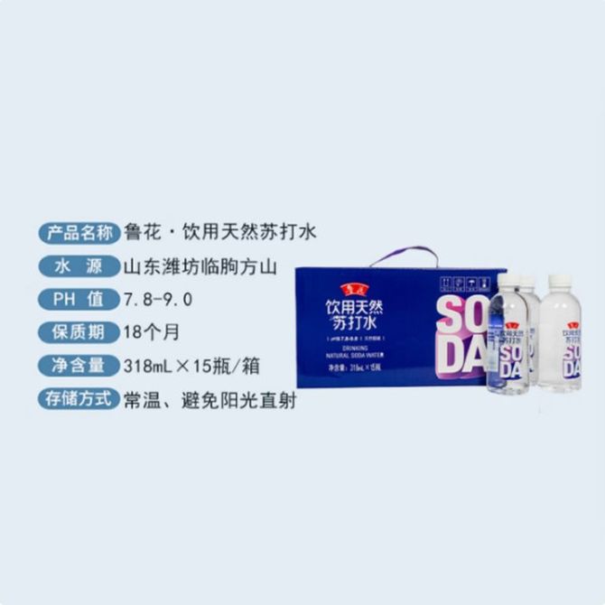 鲁花 天然苏打水弱碱性饮用水318ml*15瓶 规格;318ml*15瓶,新旧包装随机发货 兑换价格 3000 里程 会员卡别 终身白金卡 白金卡 金卡 银卡 普通卡 儿童卡 服务 由 一间食品馆 发货并提供售后 规格: 瓶装 购买数量: 件 库存件 配送地址: 立即购买 加入购物车 成功添加到购物车 关闭 购物车共有 种商品 总金额为: 组合销售 产品介绍 产品规格 售后服务 产品咨询 发现好货 巴马百年 弱碱性天然矿泉水520ml*12瓶富锶含硒水GB8537国标饮水 1500 里程 巴马百年 弱碱性天然矿泉水318ml*12瓶 小分子团水矿物质磁化饮用水 1200 里程 农夫山泉 矿泉水天然饮用水380ML*24瓶整箱装 1800 里程 农夫山泉 矿泉水天然饮用水380ML*24瓶整箱装 1800 里程 农夫山泉 饮用天然水5L*4桶 家庭饮用水 桶装水【2箱装】 3600 里程